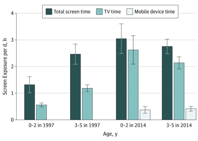 Chen, W., Adler, J. L. (2019). Assessment of Screen Exposure in Young Children, 1997 to 2014. JAMA pediatrics, 173/4: 391–393. https://doi.org/10.1001/jamapediatrics.2018.5546